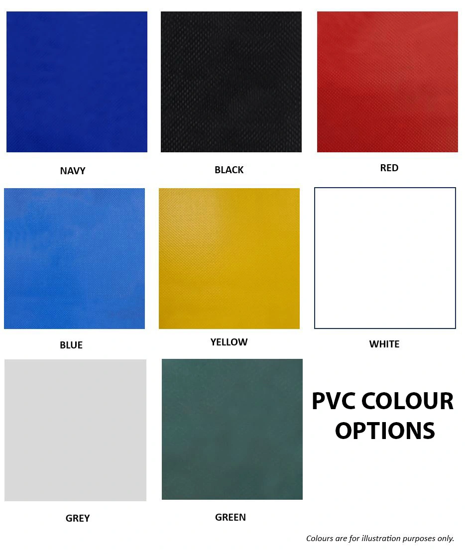 PVC Colours: Navy, Black, Red, Blue, Yellow, White, Grey and Green