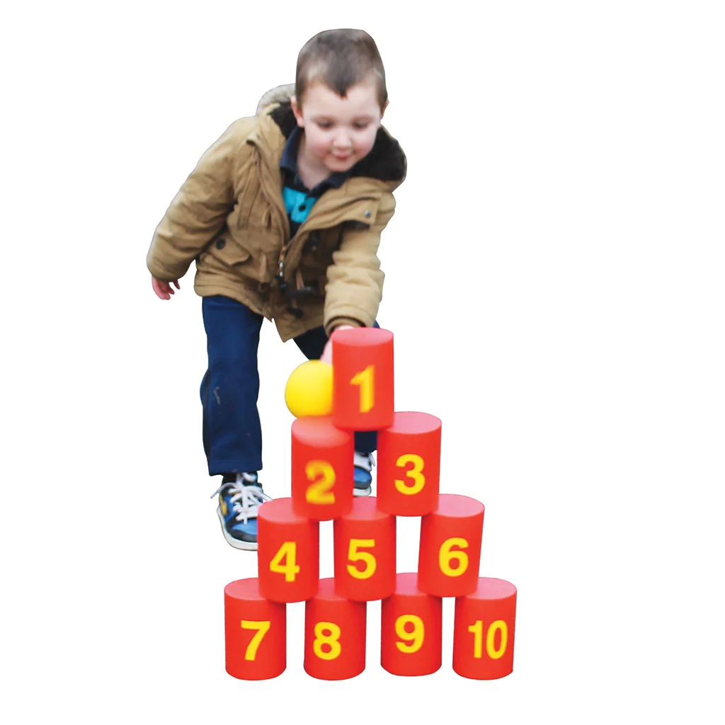 Those Tin Can Alley days are back. Children love the challenge of knocking down the cans with the ball. The product is created from safe coated foam. So set up the cans and let the fun begin!